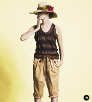 デニム、ミリタリー、ワークをベースに、訪れたさまざまな国で出会ったひとや風景、空気から感じ取ったイメージからコレクションを構築するFACTOTUM。2010年よりウィメンズコレクション「FACTOTUM femme」をスタートさせ、毎回ひとつテーマのもとコレクションを展開し、ユニセックスな提案をおこなっている。2012年春夏シーズンのテーマは“Sunday at the park”。1970年代アメリカのヒッピーカルチャーにインスピレーションを得たというコレクションでは、日曜日の公園に集まったコミュニティのような、明るく自由な精神につつまれたスタイルを表現する。