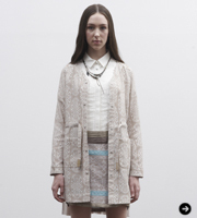 一見“シンプル”とは相反する手法をもちいながら、あくまでシンプルでリアルな印象を与える絶妙なさじ加減は、ブランドの得意とするところ。たとえばメンズライクなヴィンテージチノに手編みで仕上げた繊細な衿を組み合わせたり、張りのあるリネンコーティングやコットンラミーモールスキンとフェミニンなキュプラサテンのコンビネーション、また、薄手のニットをパーツで切り替える手法や、左右で異なるデザインの袖をほどこすアシンメトリーなディテールや素材づかいなど、異なるエレメンツを組み合わせ、たんに綺麗で洗練されただけの表現に留まらない独自のスタイルを提案する。