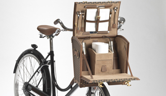 ストア内では、100年以上前に製作されたアーカイブのトランクも展示される。さらに、自転車用に製作したという「バイスクル トランク」をディスプレイ。ブランド創業当初から、あらゆるニーズに対応してきたモワナならではの、ユニークな作品によるデモンストレーションは必見だ。