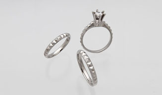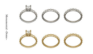 「モニュメンタル ピラミッド」、「モニュメンタル ドーム」、「モニュメンタル リッジ」の全3型それぞれにエンゲージリングとマリッジリングを揃えている。