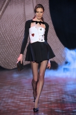 2014-15年秋冬コレクションはマジシャンをテーマにしました。バニーガールが登場し、トランプカード(イラストは父のピエールが描いたもの)プリントのスペンサージャケット、ドレスを並べました。私のテーマはいつも“ピンナップガール”! 春夏はセイラー・ピンナップガールで秋冬はマジック・ピンナップガールです。日本語の“kawaii”とフランスのフェミニンを併せ持つ女性をイメージしたものです。