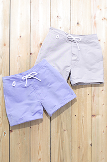 「キュイス ドゥ グルヌイユ」は、1950年代にカリフォルニアのサーファーたちが愛用していたボードショーツを再現。コシのある生地感と、ペールトーンの優しい色合いがマッチして品のある仕上がりに