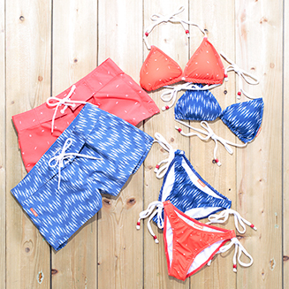 アート、手工芸、デザインに重点を置くイギリスのサーフブランド、「スワミーズ」。サーフウェアはもちろん、世界観を反映した洋服やアクセサリーのコレクションもラインナップする。ビキニ、ボードショーツ、スカーフといったアイテムは、共通のデザインで用意されているので、すべてそろえてコーディネートすることもできる
