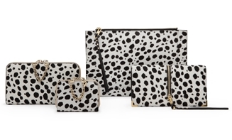 柔らかみのあるシルエットが特徴の「ベイリー」は、ダルメシアンプリントを存分に楽しめるデザイン。開口部のジッパーに配した揺らめくゴールドのチェーンがエレガントなアクセントになっており、ショルダーストラップ付きで2WAYで使用が可能。パリシックをモダンに解釈した「アリス」は、ブラックを基調にダルメシアンプリントを絶妙なバランスで使用。デイリーユースしやすい洗練された雰囲気なのがうれしい。「アリソン」は、ダルメシアンプリントを使用することで新鮮なイメージに変身。ビジネスバッグとしても重宝する使いやすいサイジングが魅力だ。