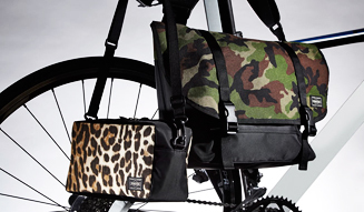 HEAD PORTER 2014 A/W COLLECTIONから、オープン日の7月11日に登場したのは、敵や獲物をカモフラージュするようすからインスパイアされた「JUNGLE(ジャングル)」シリーズ。ポリエステルとコットン生地に、染色プリントをほどこして独特の風合いを表現。ソフトな手触りと洗練されたイメージを演出している。テキスタイルはネイビーをベースに、重なりあうように配されたオリジナルのカラーリングが新鮮だ