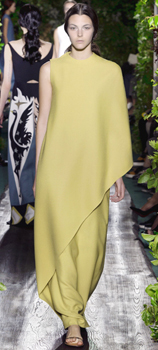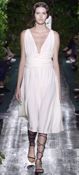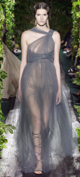 ヴァレンティノは、美しいドレープをバンデージのようにベルトで抑えたドレスがモダンです。バイアスカットのアシンメトリードレスはシンプルで大胆。全てのドレスにフラットシューズを合わせます。クラシックを、ぐっとリアルなクチュール服に仕立て直しました。