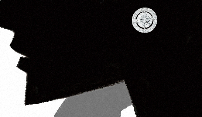 一粒のきらめくダイヤモンドを、パヴェセッティングされたダイヤモンドのリングが取り囲む。2つを別々に分解して、それぞれ使うこともできる。ダイヤモンド・イヤリング[PT×WG×ダイヤモンド]460万円、ダイヤモンド・サーキュラー[WG×ダイヤモンド]26万円(ともにグラフ/グラフ東京サロン)