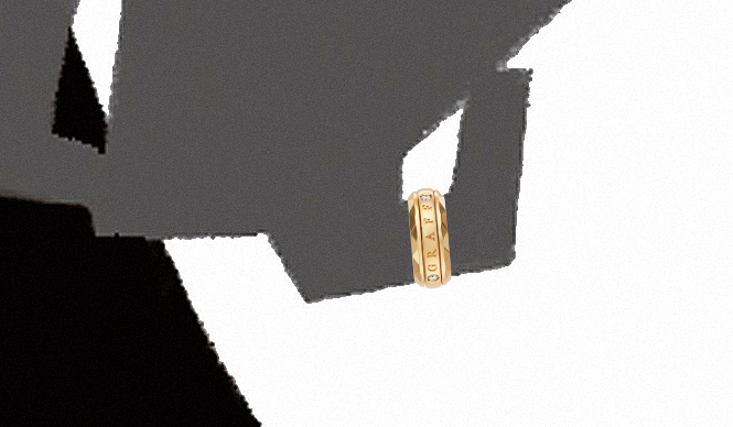 少しだけボリュームのあるリングをピンキーとして使って。2つのダイヤモンドがポイントになっている。ダイヤモンド・リング[PG×ダイヤモンド]31万4000円(グラフ/グラフ東京サロン)