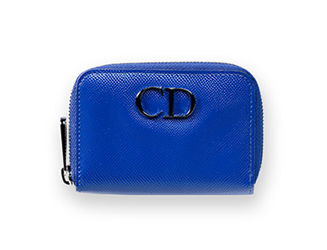 ディオールの新たなスモールレザーコレクションのディオールマニア。頭文字をあしらったブランドの新しいシグネチャーが、財布の中央に鮮やかなコントラストで配されている。コインケースのサイドにカードスロットを添えたミニジップは、まぶしいほどのブルーが印象的。シグネチャーに合わせペイントされたファスナーエンドにも注目したい。