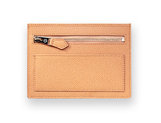 キャメル色が上品なカードケースはジョルジオアルマーニが考えるミニマルな美しさを具現化したかのよう。シンプルなジップポケットにチケットホルダー、裏面はカードスロット8つだけを並べた究極のシンプルデザイン。極薄のマチなので、コートやジャケットのポケットに忍ばせてもかさばらず、スマートに携帯できる。