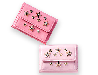 ジミーチュウのNEMOから、新色のローズピンクとチェーリーブロッサムが登場。愛らしいピンクレザーに合わせ、おなじみのスタースタッズもカラフルに染められている。手に収まるほどのミニサイズだが、外側にコインケースを、内側にお札入れとカードスロットを装備し、収納面でも申し分なし。スイートなピンクのお財布を手に入れ、ハッピーな一年を。