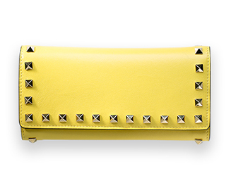 ヴァレンティノで大ヒットの「ロックスタッズ コレクション」にあたらしいカラーの長財布がくわわった。鮮やかなイエローにゴールドのスタッズが両サイドに施され、エッジィを効かせたデザインが印象的。3つ折りの仕様でジッパー付のケースと札入れが真ん中に配置され、カードスロットはふたつのフラップにあしらわれに機能性の高いデザインとなる。新年に金運をあげてくれそうイエローの財布をいち早くゲット。