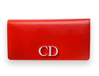 2トーンカラーが人気の「ディオール マニア」のウォレット。「CD」ロゴとライニングのレザーのライラックが表面のヴィヴィッドレッドと、色鮮やかなコントラストを演出し、抜群の存在感を発揮してくれる。コンパクトなフラップタイプの仕様ながら内側には12枚のカードスロットを配し、使いやすさも重視している。ディオールならではのフェミニンさが香る財布で日常をハッピーなモードに。