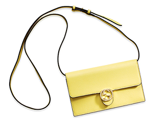 Gの頭文字を組み合わせた“インターロッキングG”が目を引くグッチ アイコンシリーズからウォレットバッグが登場。ボックス型のシルエットのバッグには、細いレザーストラップを合わせ、愛らしいムードに仕上げている。5つの豊富なカラーバリエーションのなかからは、金運に効くとされるイエローをセレクトしたい。大きなマチを活かし、カードスロット、ファスナーポケットも備えている。