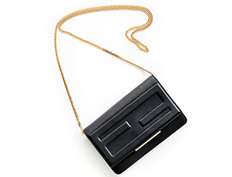 艶を消したカーフスキンがどこか禁欲的なフェンディのバッグ「Tube」。ブランドのシグネチャーでもある「ダブルF」を大きく刺しゅうし、フラップの縁にはさりげなく細いゴールドのバーがあしらわれている。もちろん、ファスナーポケットやカードスロットも完全装備。取り外しが可能な繊細なゴールドチェーンはパーティなど華やかなシーンで活躍してくれそう。