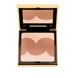 つづいて「ペッシェエクラ ハイライター」は、YSLファッションの2010クルーズコレクションで発表された、バロック調のアクセサリーをモチーフにしたハイライターパレット。繊細に糸を編み込んだパセメンテリエ(タッセル)がじつにラグジュアリー。さらには、パッケージにもモチーフがエンボスされ、まるでアクセサリーのような仕上がりだ。色は、肌に奥深いツヤをあたえるベージュと、ほのかに上気したような血色をあたえるピンクのコンビネーション。ひとはけで、サテンのような仕上がりとパールのような輝きを実現させる。