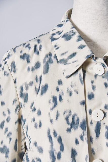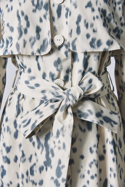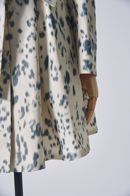 今シーズンのトレンチコートに使用した、レオパードにもダルメシアンにも見えるアニマル柄プリントは、独特な“ゆらぎ”と“奥行き”を感じさせるインパクトのある1着となっている。