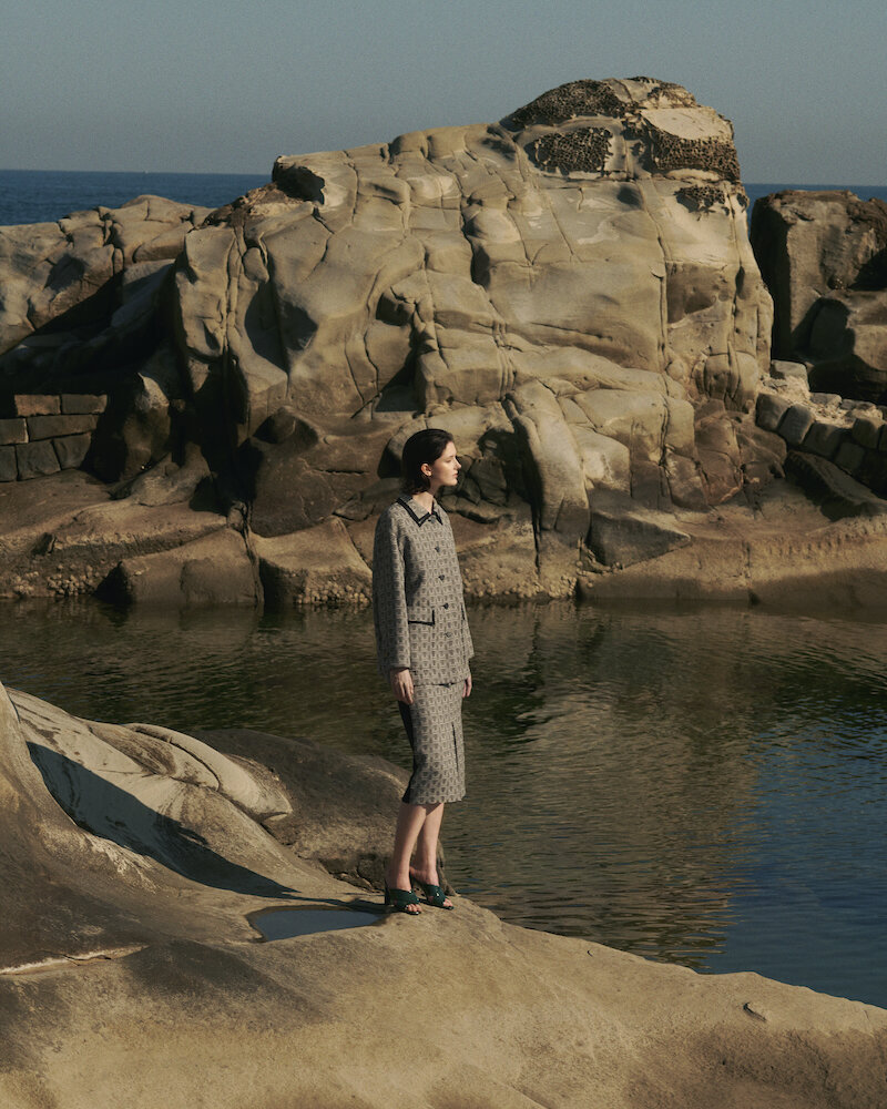 海や空を象徴するブルー、輝く太陽のイエロー、大地に根差したグリーンといったシーズナルカラーに加えて注目したいのは、ブラックとベージュを組みわせた“ダブルJLモノグラム”。ブランドアイコンを幾何学的なモノグラム柄へ落とし込み、国内外から高い評価を得ている群馬県桐生市のファクトリーに依頼し、オリジナルのジャカード生地を製作。