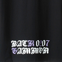 戸田 このひとクセのおかげでやんちゃな感じと言いますか、よりB.Gっぽさが表現できていると思うんです。私がこだわったのは箔ですね。このザラついた質感が気に入っていて、高級感を演出できるというか、フラットな箔だけでは出せない雰囲気が出せているのではないかなと思います。いつもならピンクやブルーを使うところですが、今回はメンズにもウィメンズにも対応できる色をということでパープルを選びました。すでに半そででも欲しいといううれしい声をいただいております!