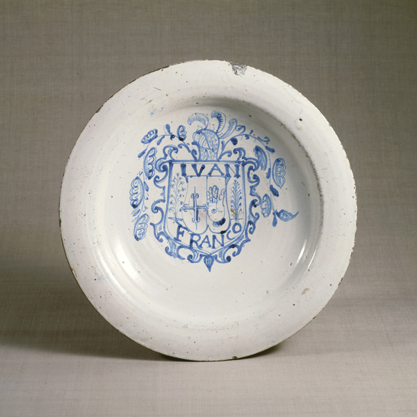 藍絵紋章図皿 スペイン 18世紀 8.0x 42.