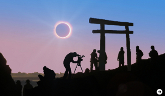 「日食」は、太陽と地球のあいだを月が横切るとき、太陽の一部(ときには全部)が月に隠れてしまう現象。なかでも、太陽が全部隠れてしまう「皆既日食」、太陽のふちがドーナツ状に月の周りにはみだす「金環日食」は、まれにしか起こらないうえ、狭い範囲でしか見ることのできない稀少な現象だ。
