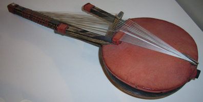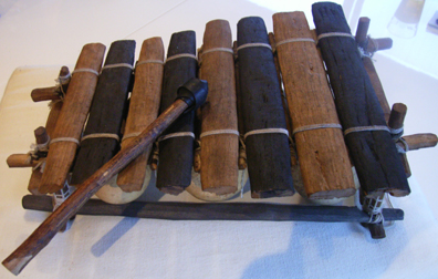 形は木琴だが下に瓢箪が付いていて、その中に砂が入っている。その砂の量で音階を付けるのだそうだ。