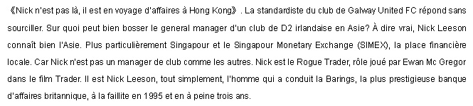 いまやニック・リーソンはアイルランドD2クラブ、ゴルウェイ・ユナイテッドFCのマネージャー。
