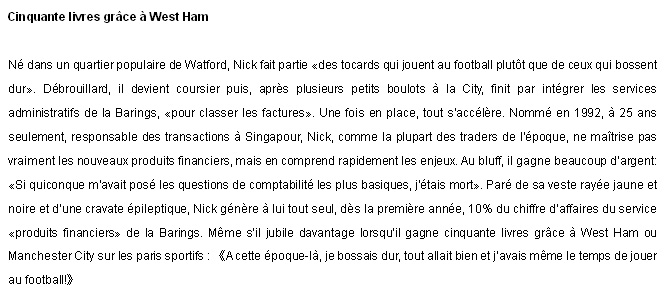 しかし、抜け目ないのがこの男。「シティ」の使いっ走りになると、つぎは雑用係、最後はベアリングズ銀行の管理職のあいだに紛れ込んでしまう。