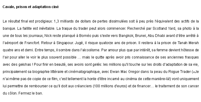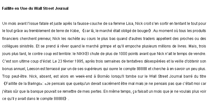 成功のための賭け、3日後の悪夢。そして目にしたベアリングズ銀行破産……。