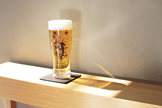 このタンブラーは以前、スクープマンのブランド『バルー』のノベルティグッズとしてつくったものです。パリのカフェなんかでは一般的な、ビールとレモネードを混ぜたパナシェ用グラスをイメージし、タヒチのボラボラ島の地図イラストをあしらいました。カタチや素材は一般的なものですし、決して高級なものではありませんが、カジュアルに酒を楽しむのにはこのくらいが丁度いい。ビールを飲んだら再びうたた寝の世界へ、が僕の定番コースです。
