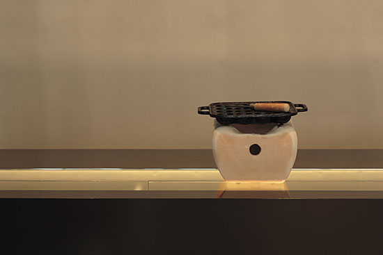 珪藻土の焜炉は何の変哲もない市販のものですが、アルコールランプがちょうどハマって便利なんです。たこやきのカジュアル感にもばっちり合いますしね。