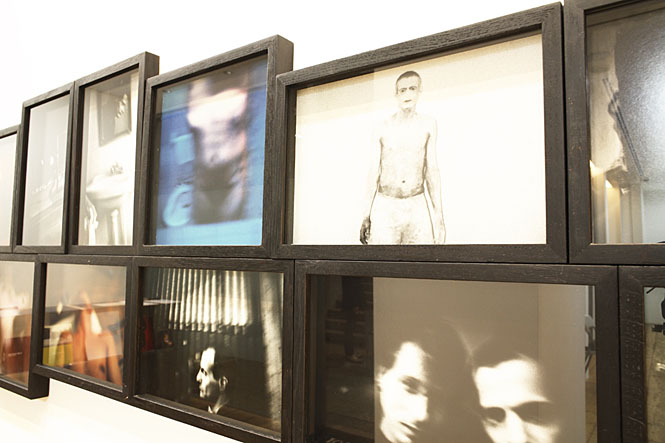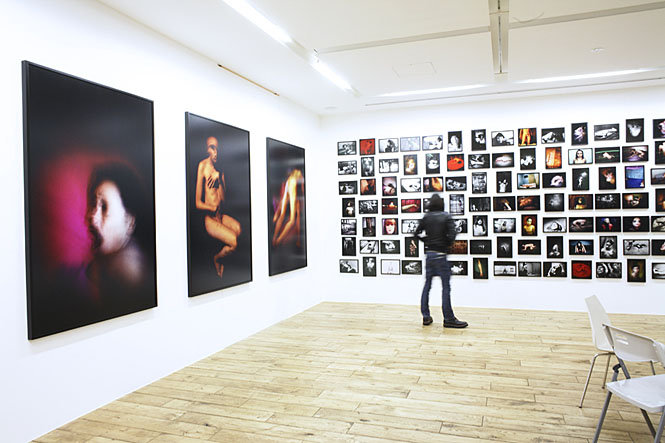 ダガタ 基本的に私の写真展には、いつもテーマがありません。唯一あるとすれば私自身の人生です。ですが、今回見せ方としては、手前の壁には大きく見せるための絵画的作品を、真ん中の壁にはたくさんの小さな写真をぎっしりと、奥の壁には順番に見せることに主眼を置いた作品を、という具合に考えました。手前から順に、絵画→写真→ムービーといったニュアンスの流れを意識したといってもいいでしょう。