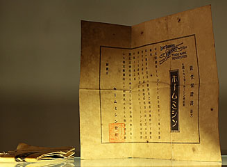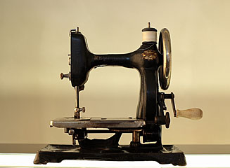 片山 これね、かわいいでしょう。家庭用の「手回しの小さいミシン」で、アメリカでつくられて日本に輸入されたモノなんですよ。日本語の取扱い説明書と保証書もちゃんとあるの。1860年(大正5年)って書いてあるでしょう?