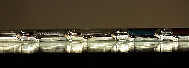 吉田 うん。あると思う。ライターのメーカーだから。僕がいちばん最初にこのペン型ライターを知ったのはまだ10代のころで、古いカタログかなんかで見かけて、かっこいいなぁと思ってたんだ。それが大人になってから、ニューヨークの汚い骨董屋で見つけて、これは見たことがあるぞと思って、まずは一本手に入れたの。不思議なもので、こういうのってなんだか自然と集まってくるみたいで、それからパリやほかの場所でも出会って、いま結局、手元に9本あるんだ。古いのは1920年代のモノで、だいたいは1930年代の製品。このペンタイプのライターは、ロンソン社が4~5年の間だけつくっていたモノらしいの。