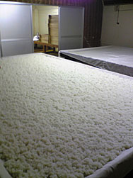 そのようにして造りあげた、日本酒の貯蔵は瓶燗火入れした後、冷房庫や冷蔵庫に入れられ瓶貯蔵されます。