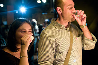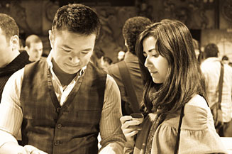 日本酒好きが高じて趣味でつくったウエブサイト「Urbansake.com」が全米で一番人気の酒ウエブサイトとなり、2007年に日本酒増中央会より酒サムライに認定されたTimothy Sullivan氏と、ニューヨークで日本酒と言ったら──の殿堂酒レストラン「酒蔵」の橋本由希絵マネージャー。
