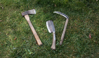 野菜や米は自給のためだが、椎茸は販売もしている。完全に天日干している農家は、全国でも数少ない。今回の展示に出展されているカマやナタ、マサカリはその生活を支えてくれるものなのだ。