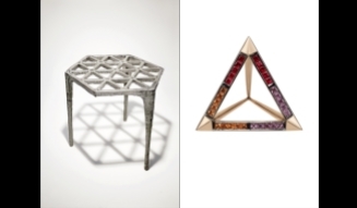 (左)Max Lamb Hexagonal pewter stool / 2008 (右)Hannah Martin Collection V: 'The Man Who Knows Everything' / 2011