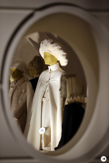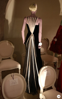 まずは「ヴァレンティノ」というエリア。ここにはヴァレンティノの個人の写真、仕事中の様子、ショーの招待状などを展示している。二つ目のエリアは「ザ・キャット ウォーク」。ファッションショーで使われる長さ60メートルのランウェイを再現し、ランウェイの両サイドに、ヴァレンティノのイブニング・ガウン、スーツ、ミニドレス、ケープとカフタンを着用させたマネキンが色別に並べられている。