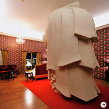 こうしたモニュメントを使ったインスタレーションのコンセプトには「屋外と屋内/外と内の逆転」、そして「公共とプライベートの逆転」があるという。その逆転が異化効果(※)を生み出している。さらに公共の場であるために、期間限定で解体されるのも特徴だ。