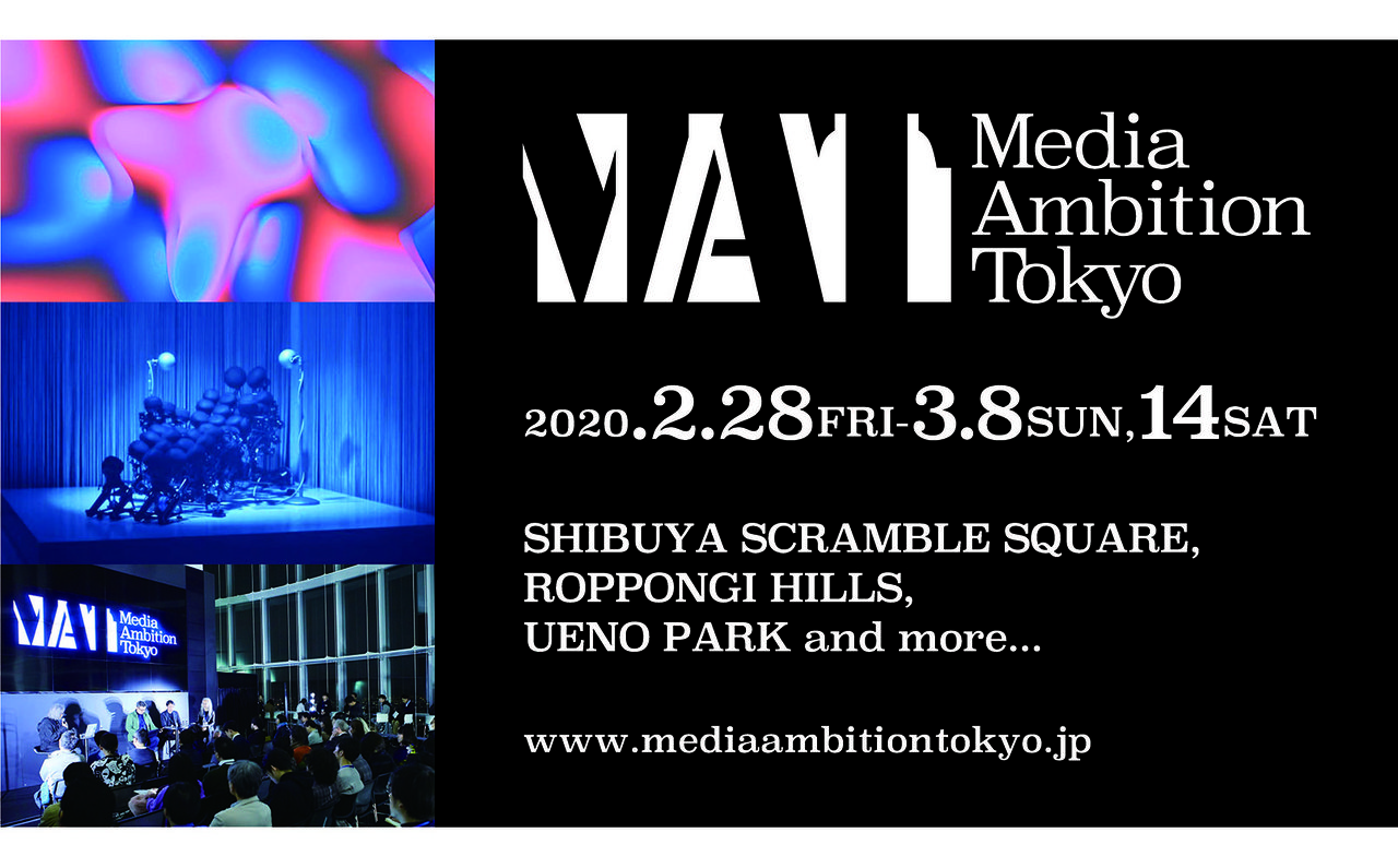 東京都内各所を舞台に最先端のアートや映像、音楽パフォーマンス、トークショーなどが繰り広げられるイベント「Media Ambition Tokyo」が今年も開催される。オリンピックを控えた今、そして未来の都市を創造するテクノロジーを発信する。会期は2020年2月28日(金)~3月8日(日)、14日(土)。