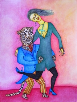 「ドローイングによってお互いをもっと深く知り、もっと愛せるようになった」というホドロフスキー夫妻。残酷でシニカル、夢想の世界を描きながら甘酸っぱい色彩が広がる絵画は二人だけの美しい愛の世界を表している。