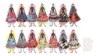 会場では、大胆で絵画的なプリントや繊細な手仕事による美しいディティール、そして日本の四季の美しさを愛する丸山が20年間にわたりつくりだしてきた独自のクリエイションによるファンタジーな世界観を披露。「KEITA MARUYAMA」の1994年スタート時から現在までのコレクション展示のほか、DREAMS COME TRUEなど豪華アーティストのために製作してきたコスチュームなど約200点が紹介される。