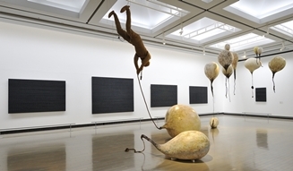 マイケル・ランディによる芸術のためのゴミ箱『アート・ビン』などの作品を序章に、11の“挿話”を2カ所の会場で展開。やなぎみわやエリック・ボードレールら現在活躍している国内外の現代美術家の作品から、ルネ・マグリット、マルセル・ブロータースらすでに亡くなってしまったアーティストの絵画や映像作品まで、約400点が並べられる。