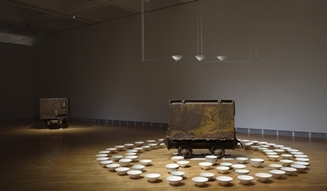 メイン会場のひとつとなる北海道立近代美術館では、岡部昌生氏による大規模な夕張炭鉱遺構のフロッタージュ作品など、北海道の炭鉱史をはじめ、エネルギーの転換期とそれを取り巻く環境や社会背景に関連した作品が並ぶ。
