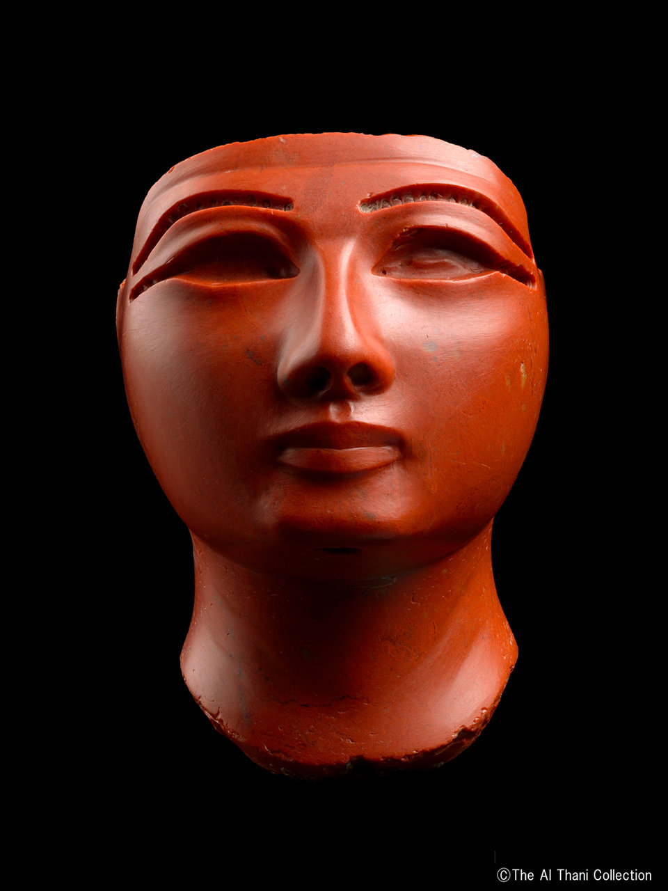 全3章構成の第1章では、「人」を主軸として、ファラオ像など各地の古代社会を統治していた王や有力者にまつわる工芸品が展示される。理想的な姿で表現された王像、煌びやかな装身具、葬送のために特別に作られた品々など、いずれも、貴重な素材を高い技術で加工した名品だ。
