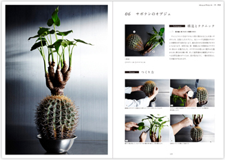 また応用編では17作品のつくり方をとおして、さまざまなスタイルとシーンに沿った制作をレクチャー。東氏が生み出した「ボタニカル・スカルプチャー」でもちいられる、葉もので作った「リーフワーク」の手法も公開される。