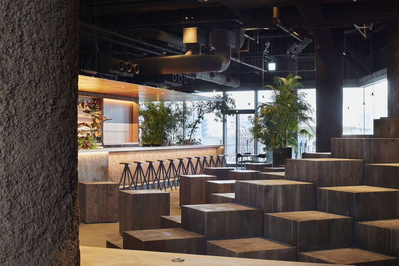 1000平方メートル平米のフロアに、メゾン「élan/エラン」、オールデイ・ダイニング「EUREKA/ユリイカ」、バー「fünklein/フンクライン」、グロッサリー & スーベニア「eatrip soil/イートリップ ソイル」が展開される。