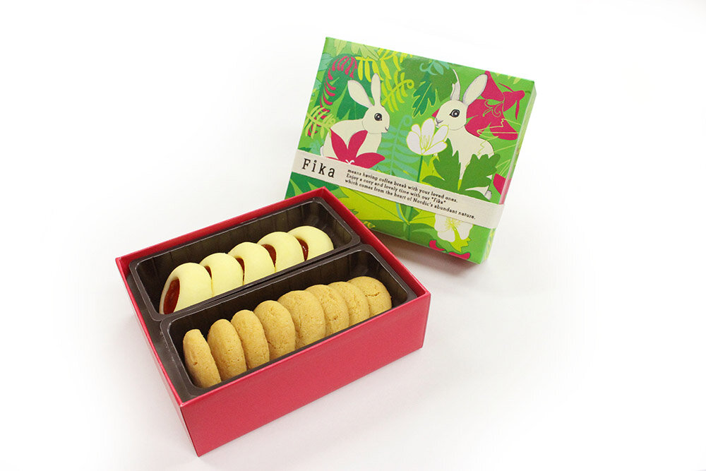ほろほろ食感のクッキー「ハッロングロットル」と、ザクザク食感のクッキー「ドロンマル」を、フィンランド在住のイラストレーターによる2020年夏季限定パッケージの中に。