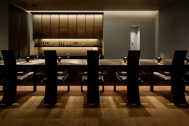 これらの特別な料理をいただくのは、地層をイメージした左官仕上げの壁が印象的なダイニング。「Nipponキュイジーヌ~ときの旅~」は、このダイニングで1日3組6名までの限定コースとして提供される。特別な空間、選び抜かれた食材を使って料理された、過去から現在を辿る食体験を堪能したい。